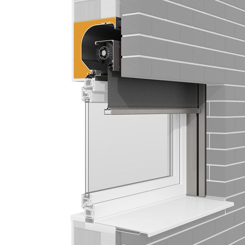 Aufsatzraffstorensysteme gibt es für Putz- und Klinkerfassaden inklusive der möglichen Auf- und Nachrüstung mit integriertem Insektenschutzgitter oder Motorbetrieb.